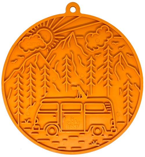 Spread your dog's favorite food across the mandala pattern, filling the grooves and textured areas. The intricate design creates a challenging feeding puzzle that encourages slower eating and extended engagement. For maximum enrichment, freeze the tray with wet food, broth, or treats to create a longer-lasting activity that's perfect for hot days or crate training.